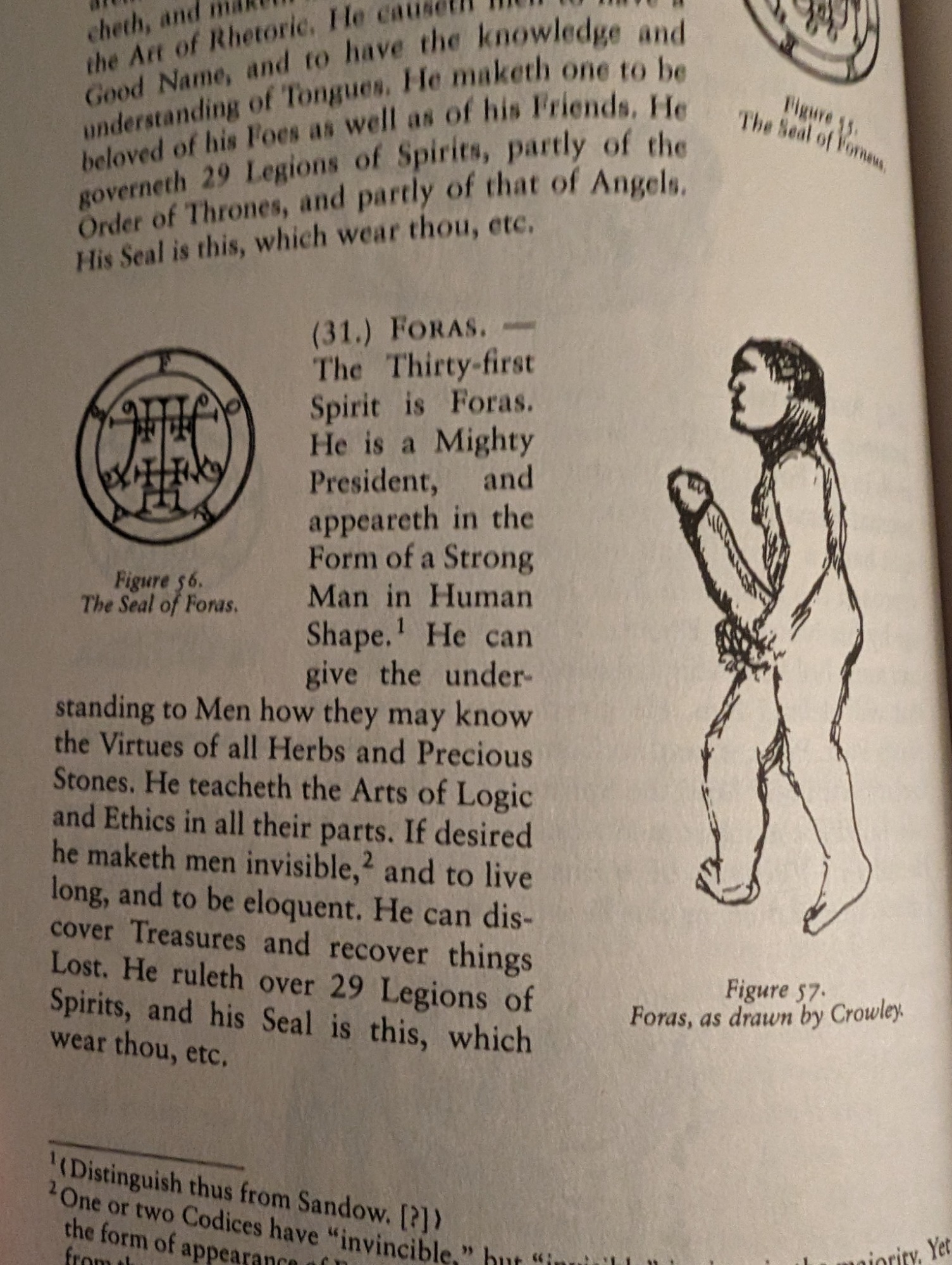 As we navigated around this catacomb and labyrinth, interacting with the individuals in there and assisting wherever we could, suddenly everything went still and quiet, a loud bang happened and a locked door that was situated on the walking level, above the sewerage, opened, this mist came oozing out of the doorway illuminated by the light that preceded it. Then this demon stepped out, Alistair Crowley's depiction of the demon “Foras”, a man with a huge 3ft long erect penis. His penis with gyrating and vibrating, it was shuddering and violating the laws of physical existence, really, it was something to behold and it was also utterly terrifying. Foras then just sprinted at us, with his huge cock vibrating, shuddering and gyrating, instinctively, we just ran as it was utterly terrifying having this demon with his huge erect cock being shoved in your retinas. And ran we did, and we just ran, and ran, through this labyrinth, I don't think that I've ever ran so much in a dream before! So much so that it actually got a bit boring, at this point, I then stopped and said to my mate, “I'm not even sure what we are running from at this point, I think Foras is just in it purely for the chase”. With this acknowledgement everything just calmed down, we stopped running and within an instant there was no longer any Foras or anything worth running from, but on first appearance he really was utterly terrifying, that shuddering and gyrating penis houses a permanent place within my conscious field.